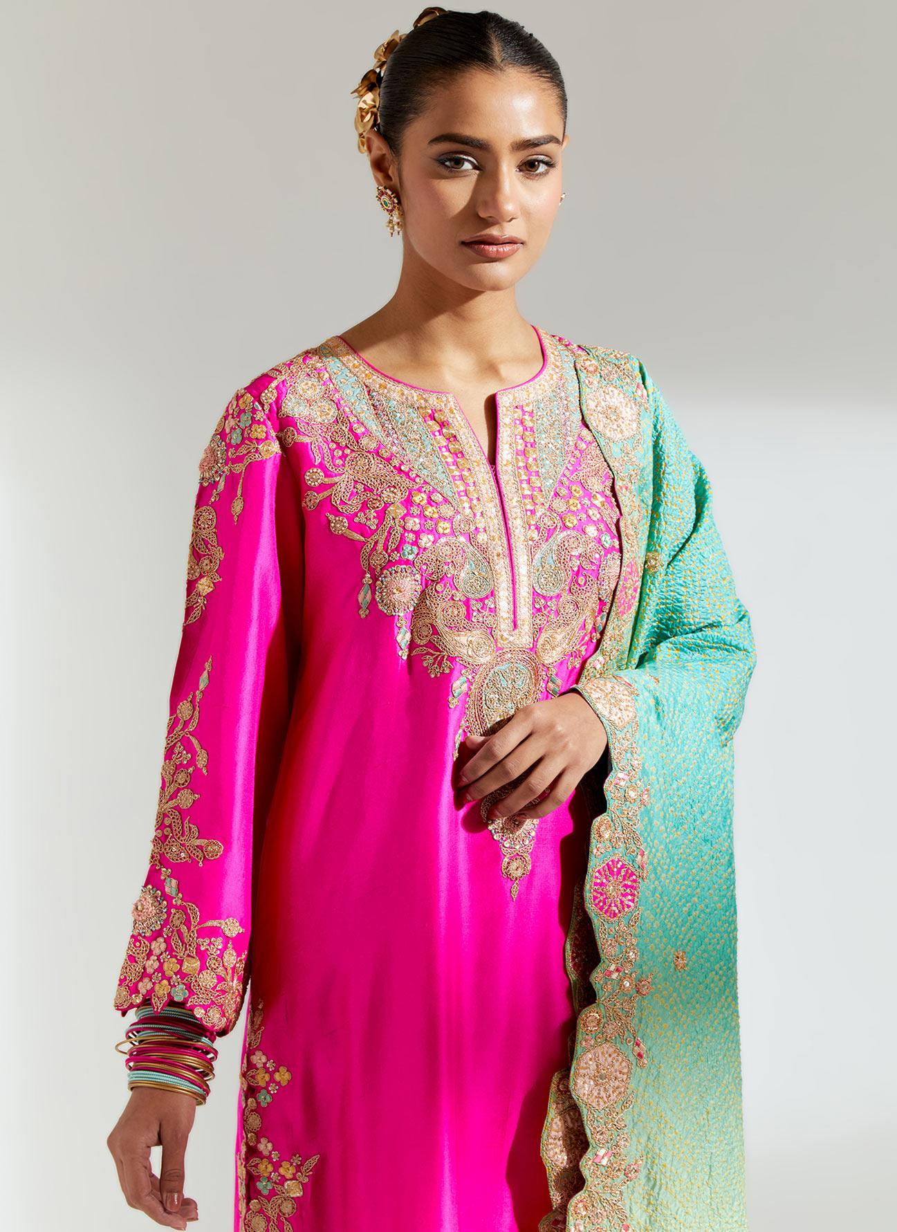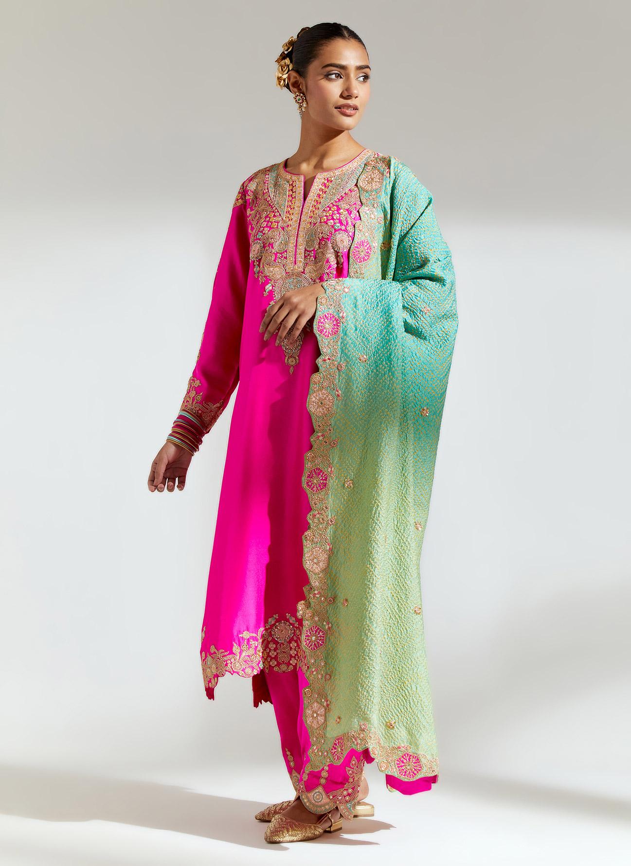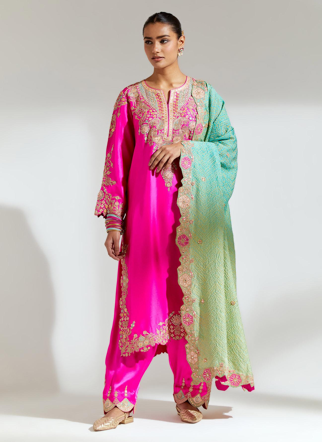 • Fabric: kurta - dupion, izaar - silk, dupatta - silk bandhani
