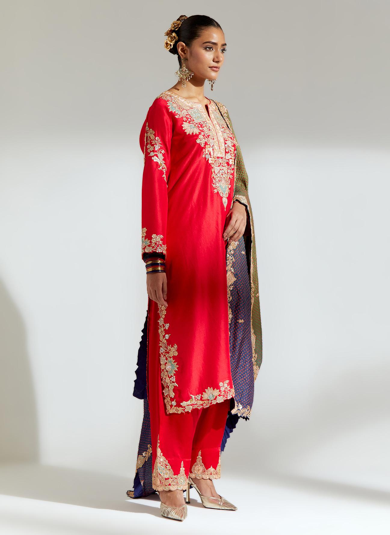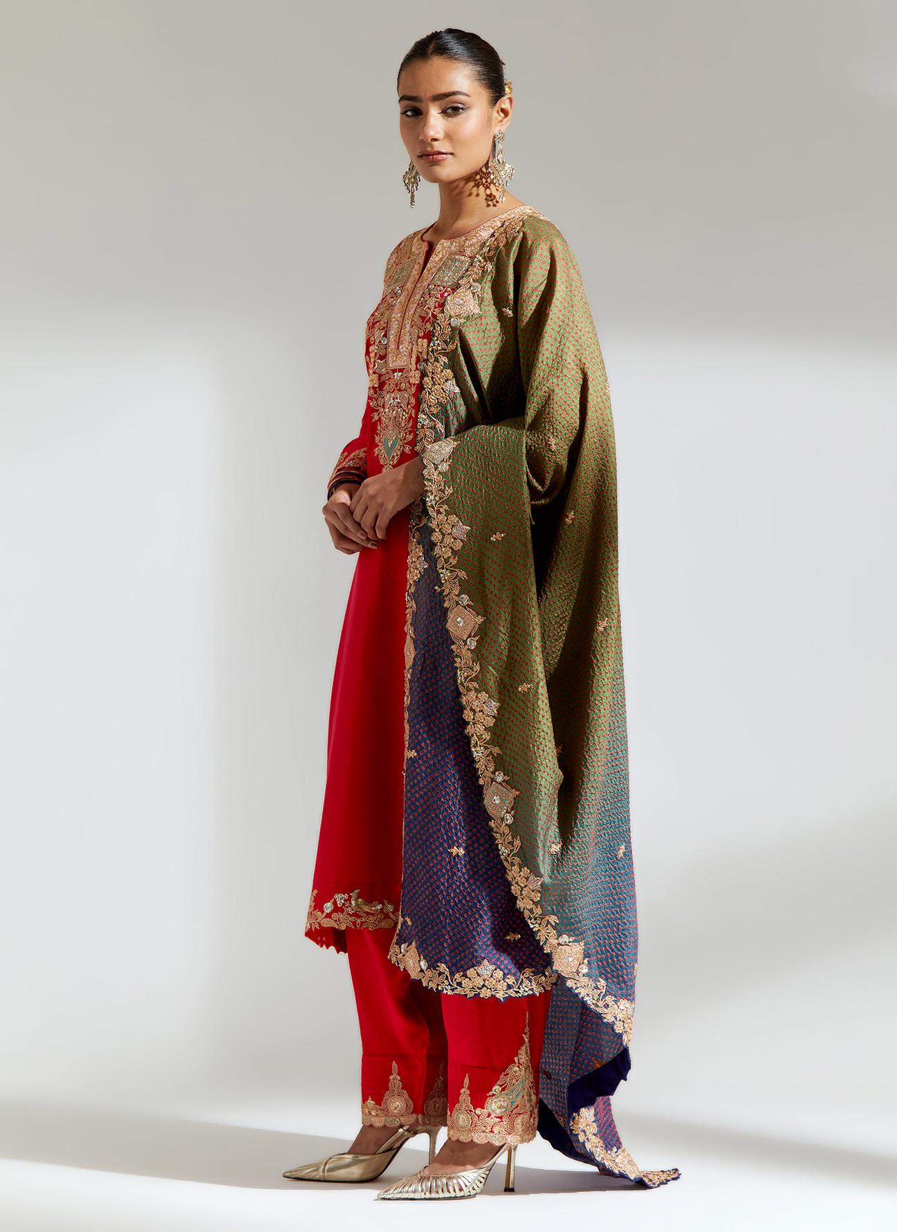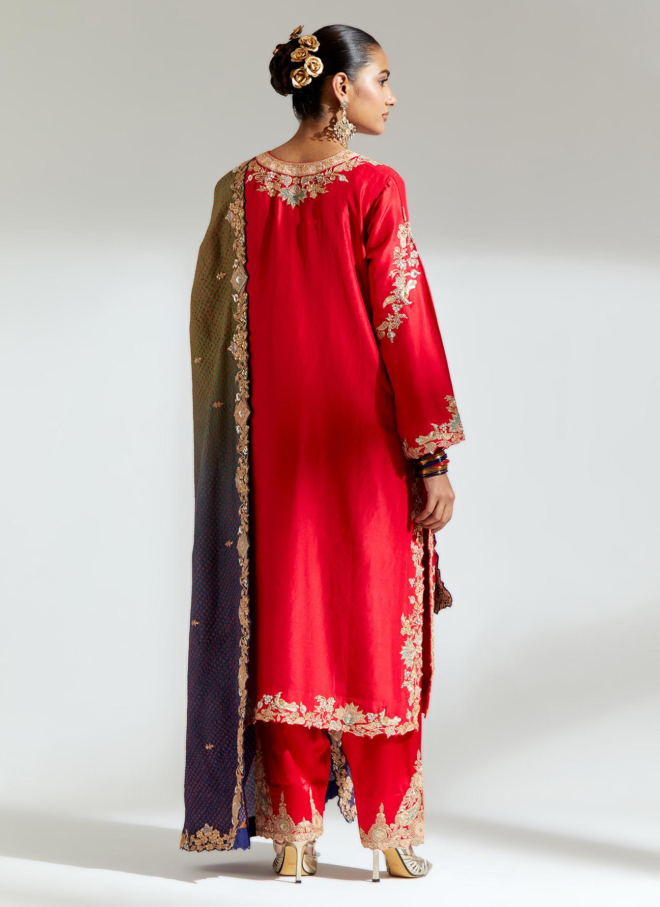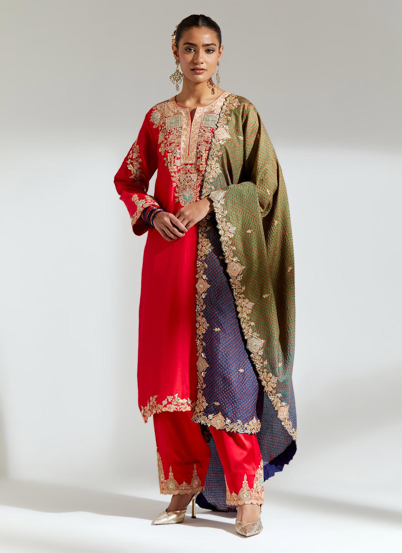 • Fabric: kurta - dupion, izaar - silk, dupatta - silk bandhani
