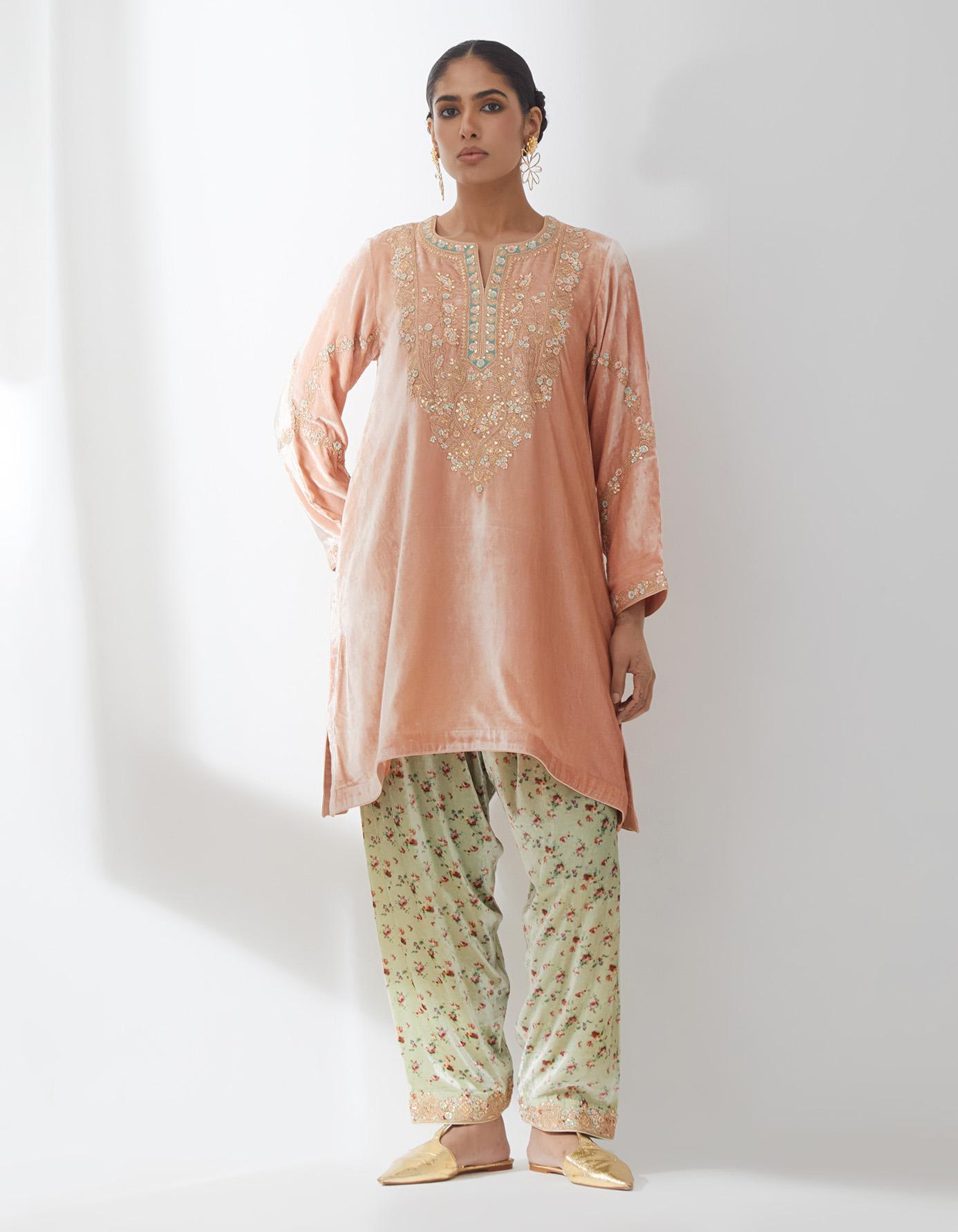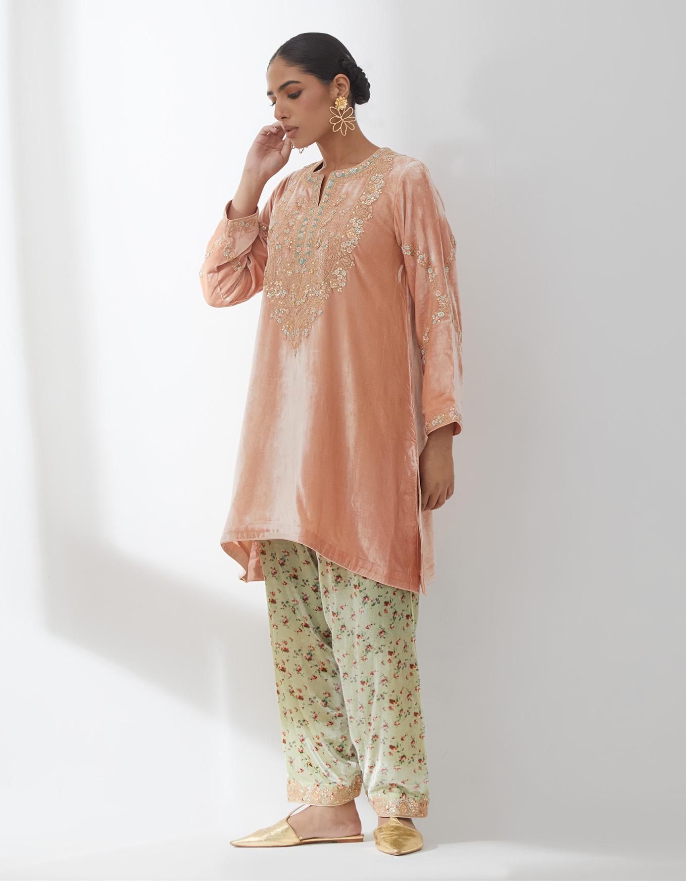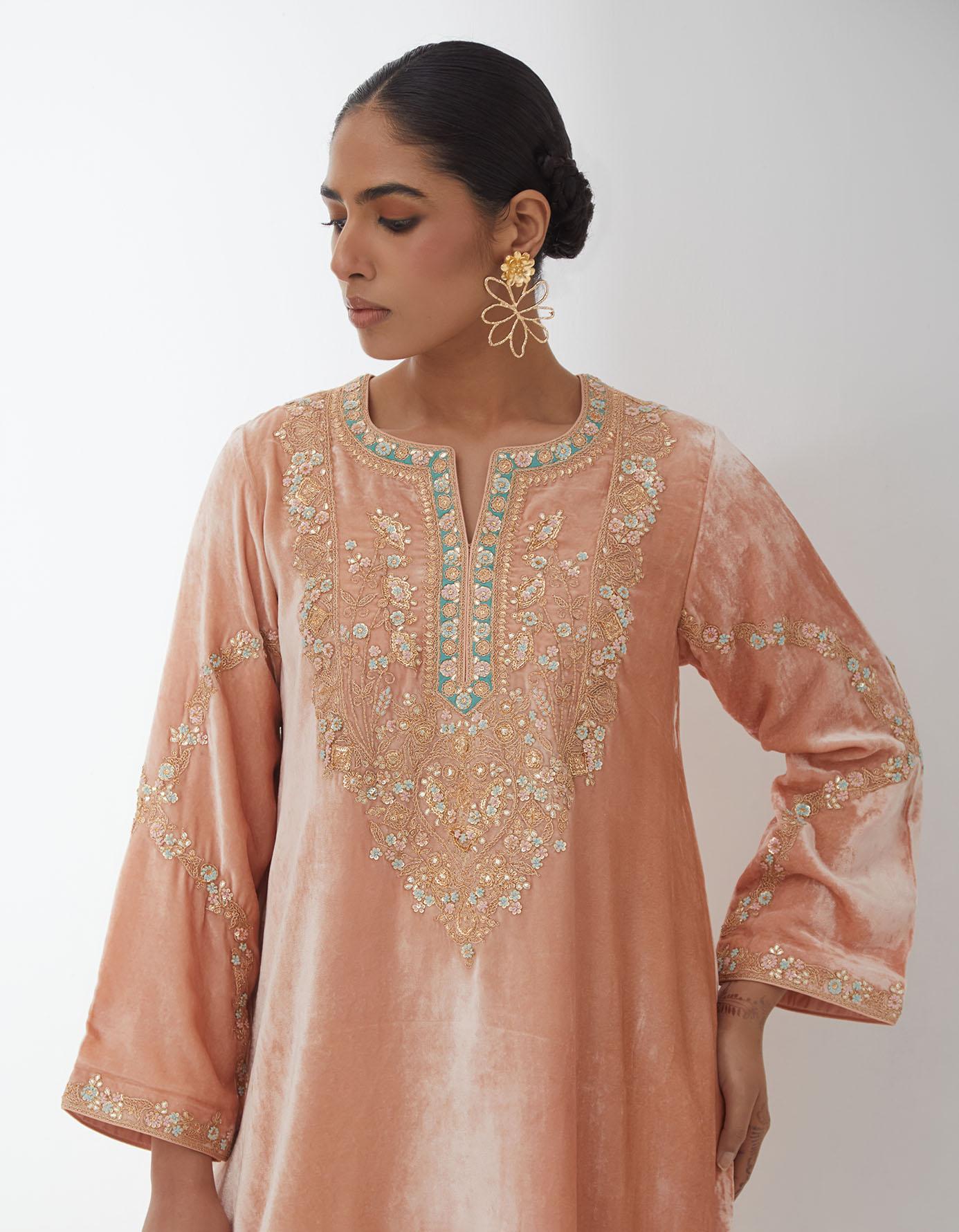 Salmon Embroidered Kurta