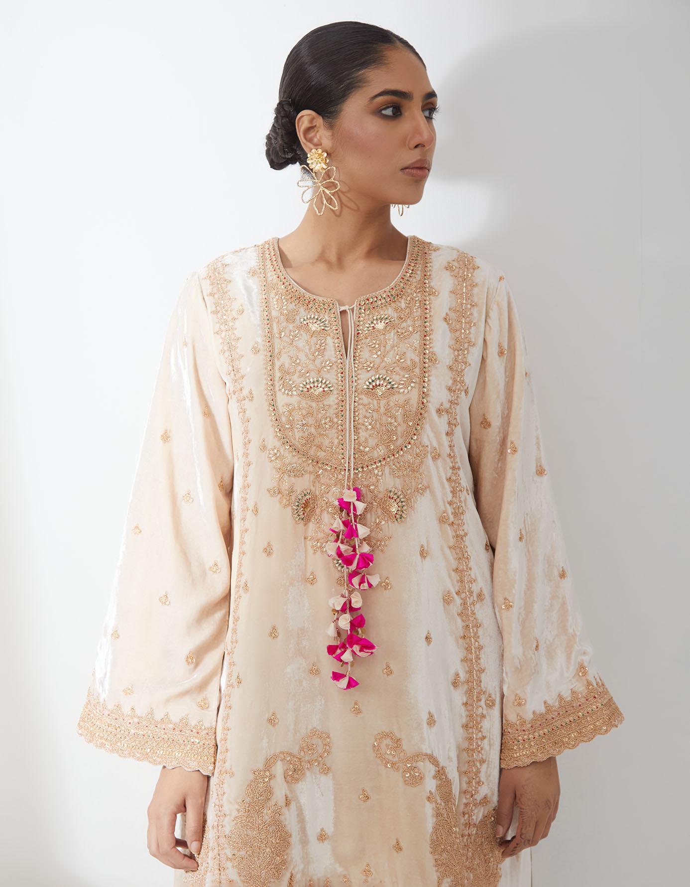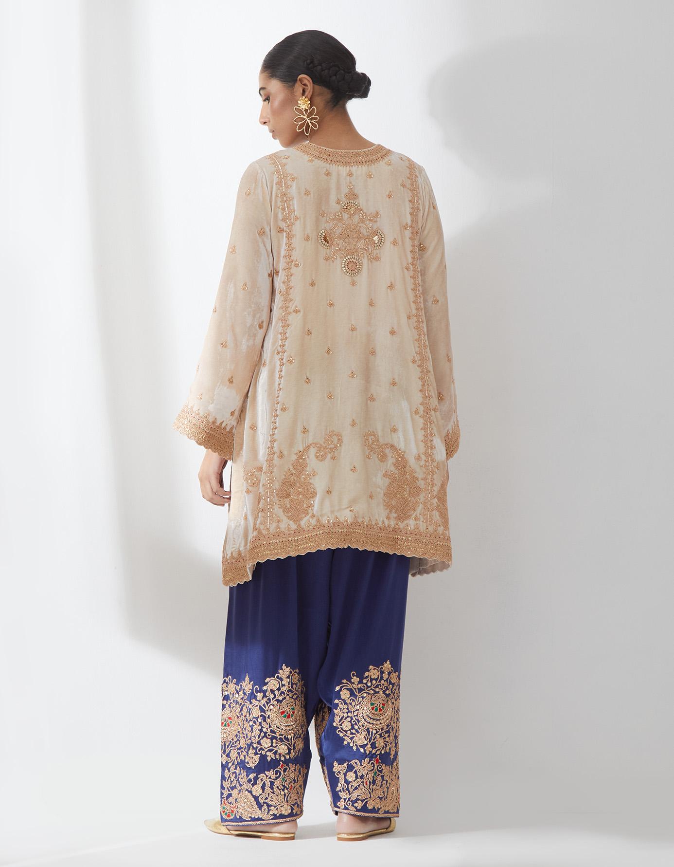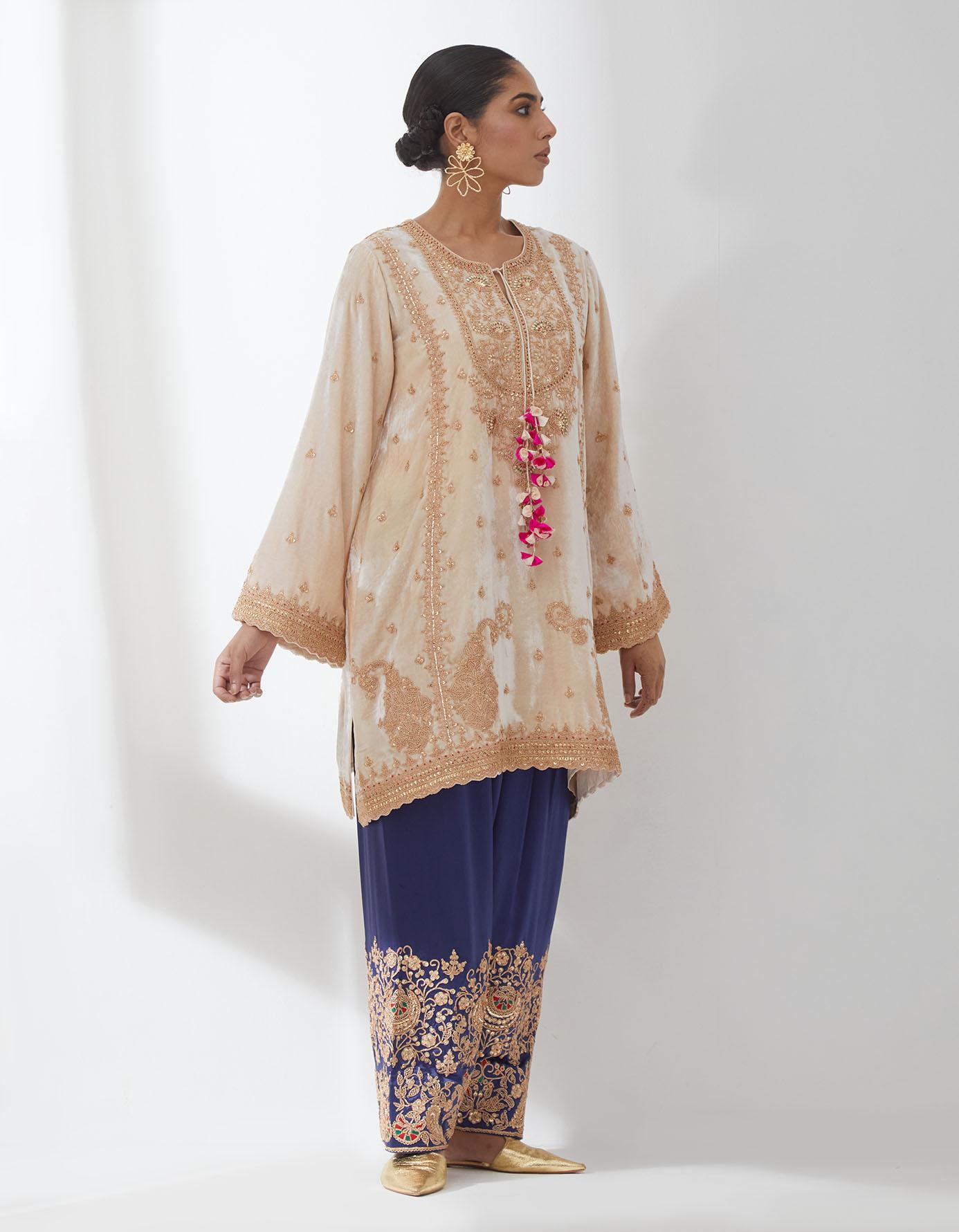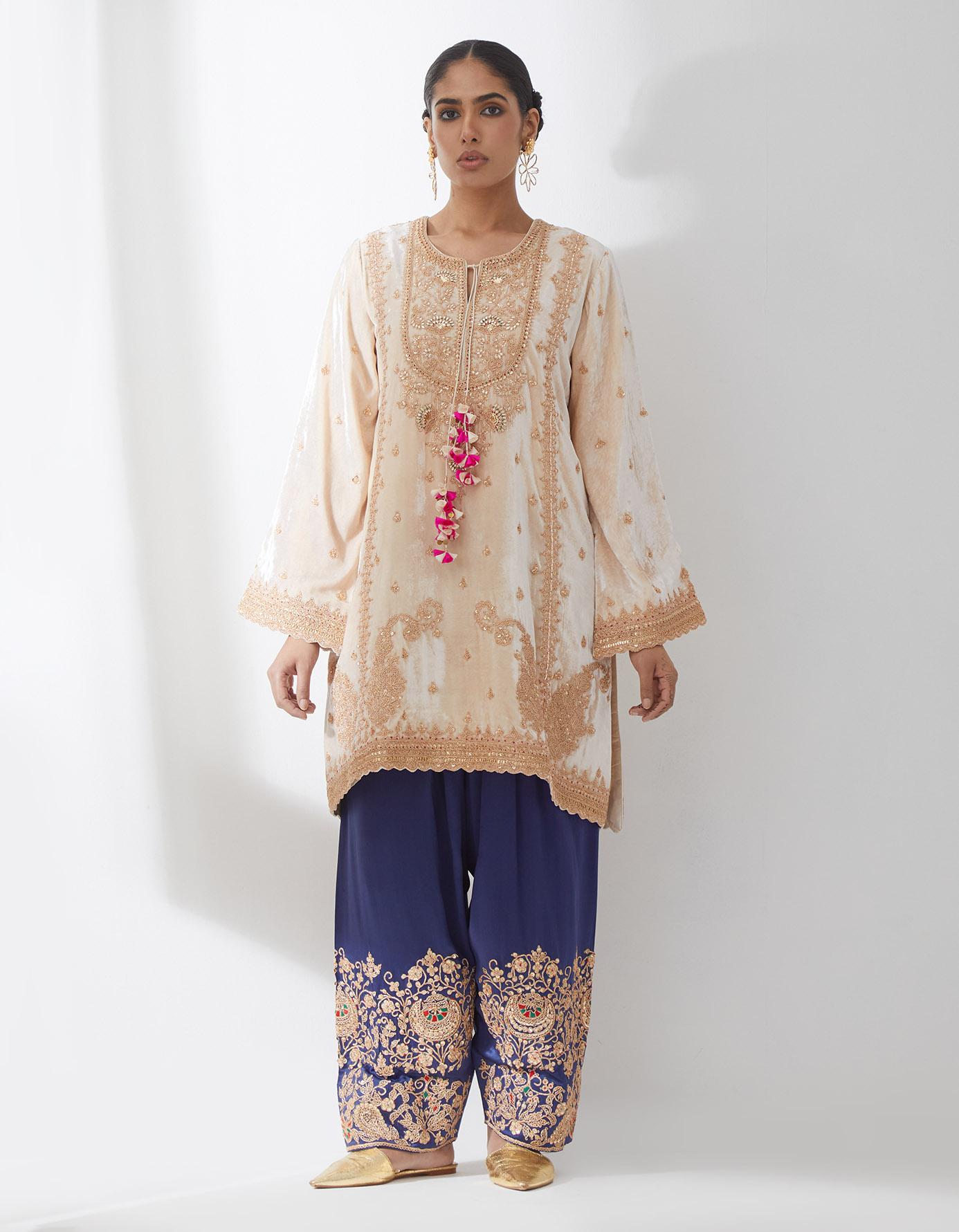 Due to the handcrafted nature of this garment, the color of the base fabric and the embroidery threads may vary from piece to piece, adding a unique touch to each item