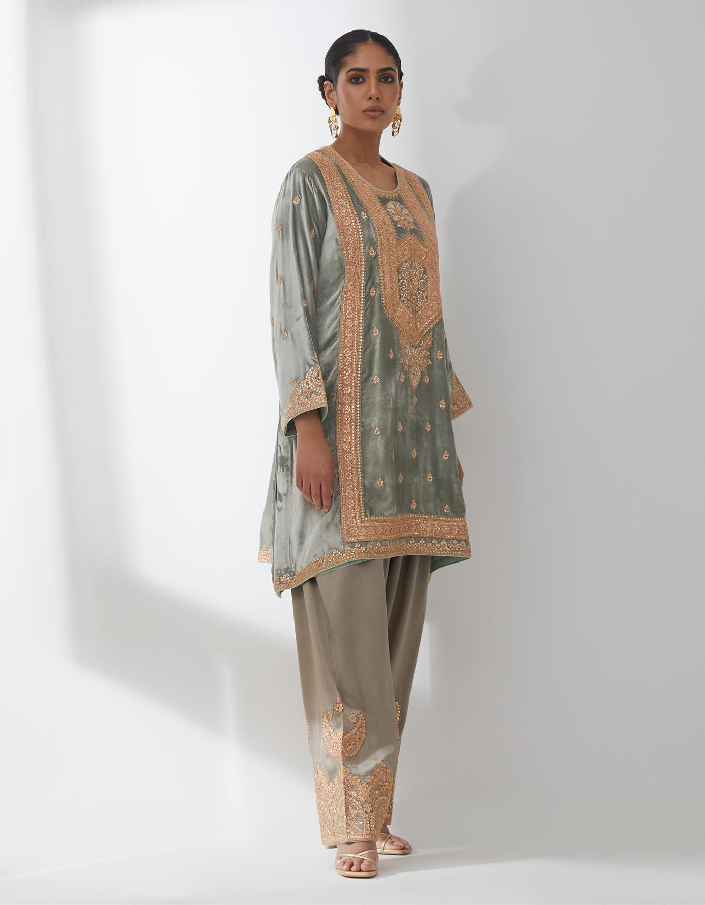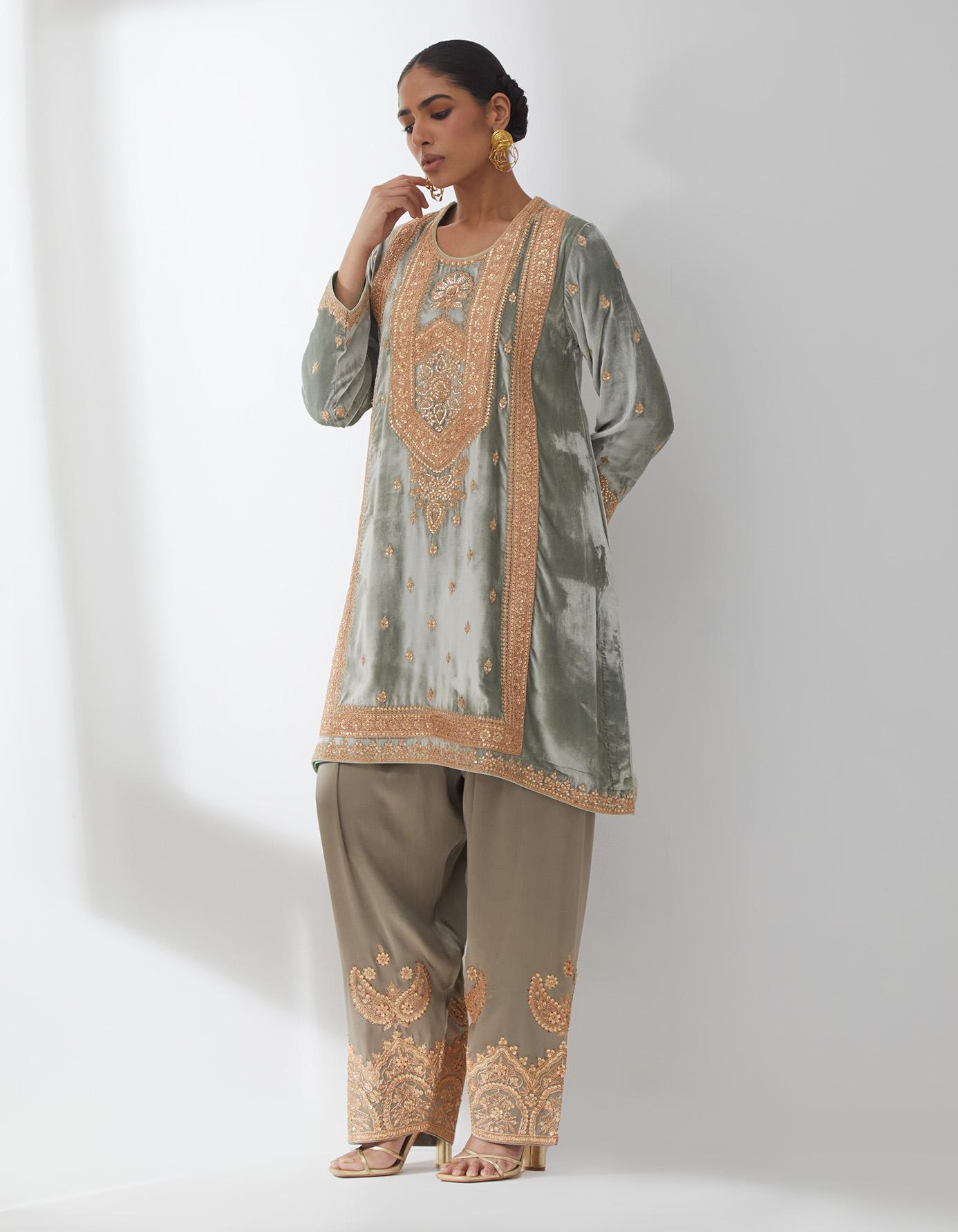 Due to the handcrafted nature of this garment, the color of the base fabric and the embroidery threads may vary from piece to piece, adding a unique touch to each item