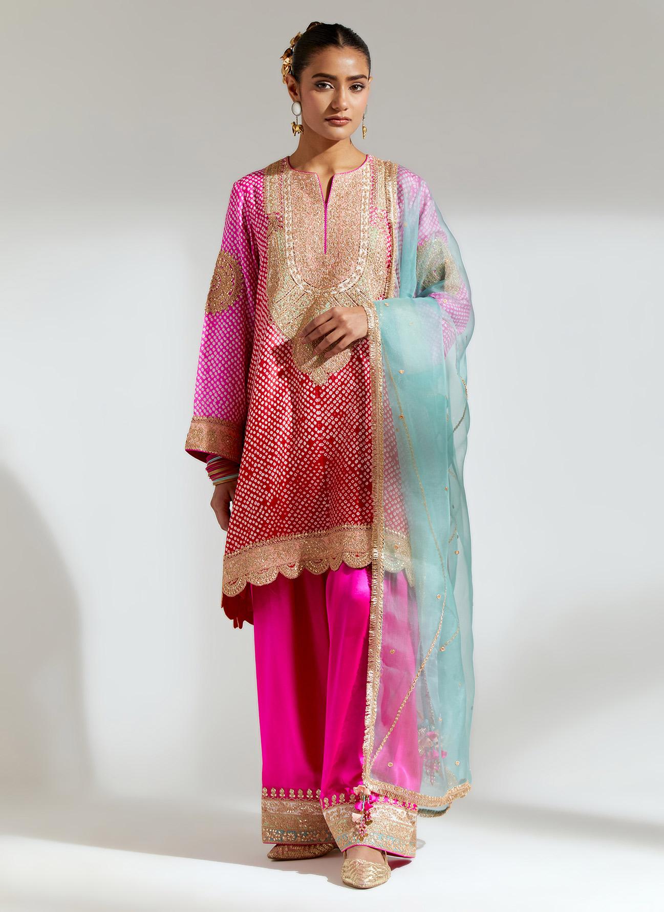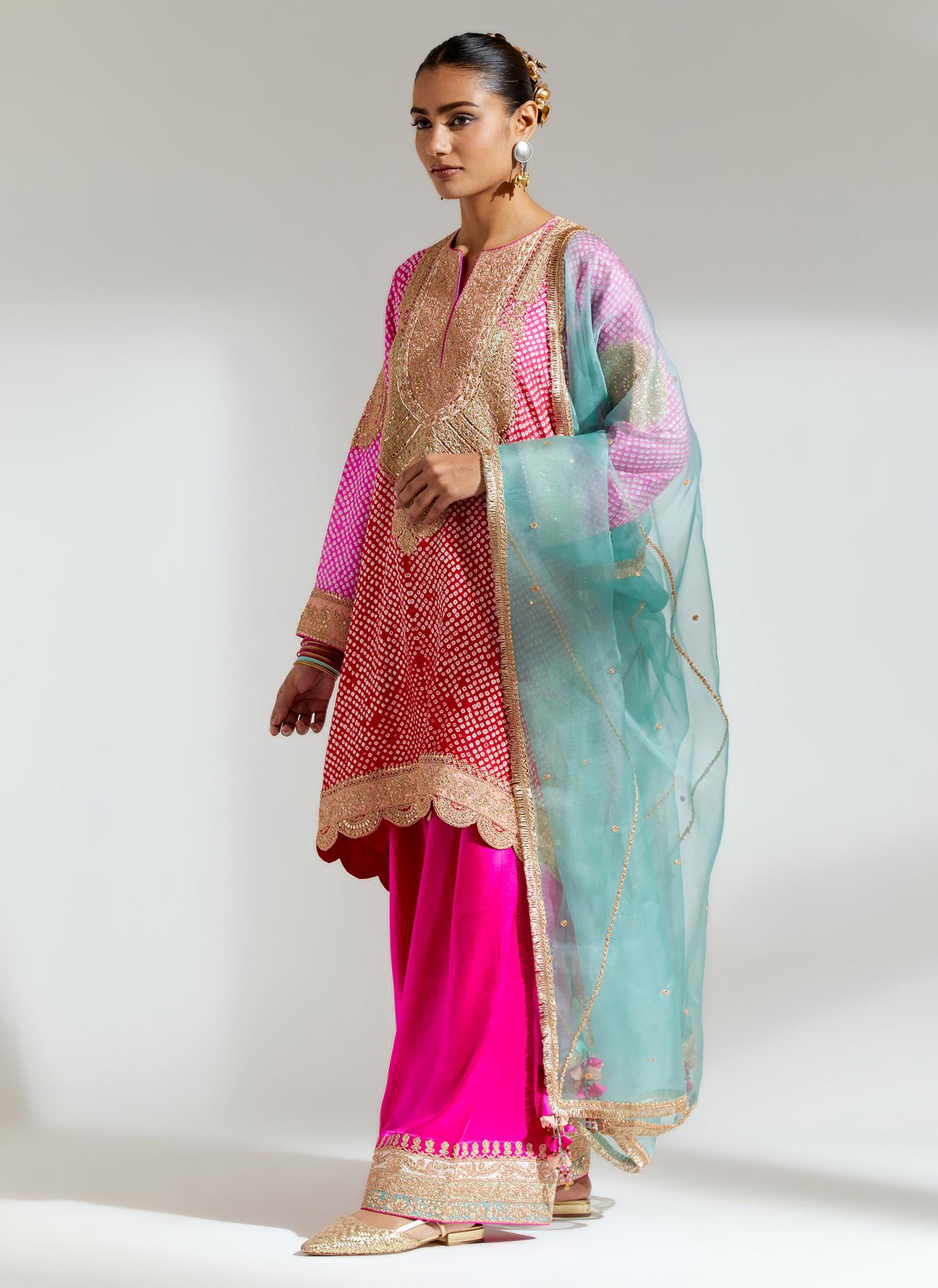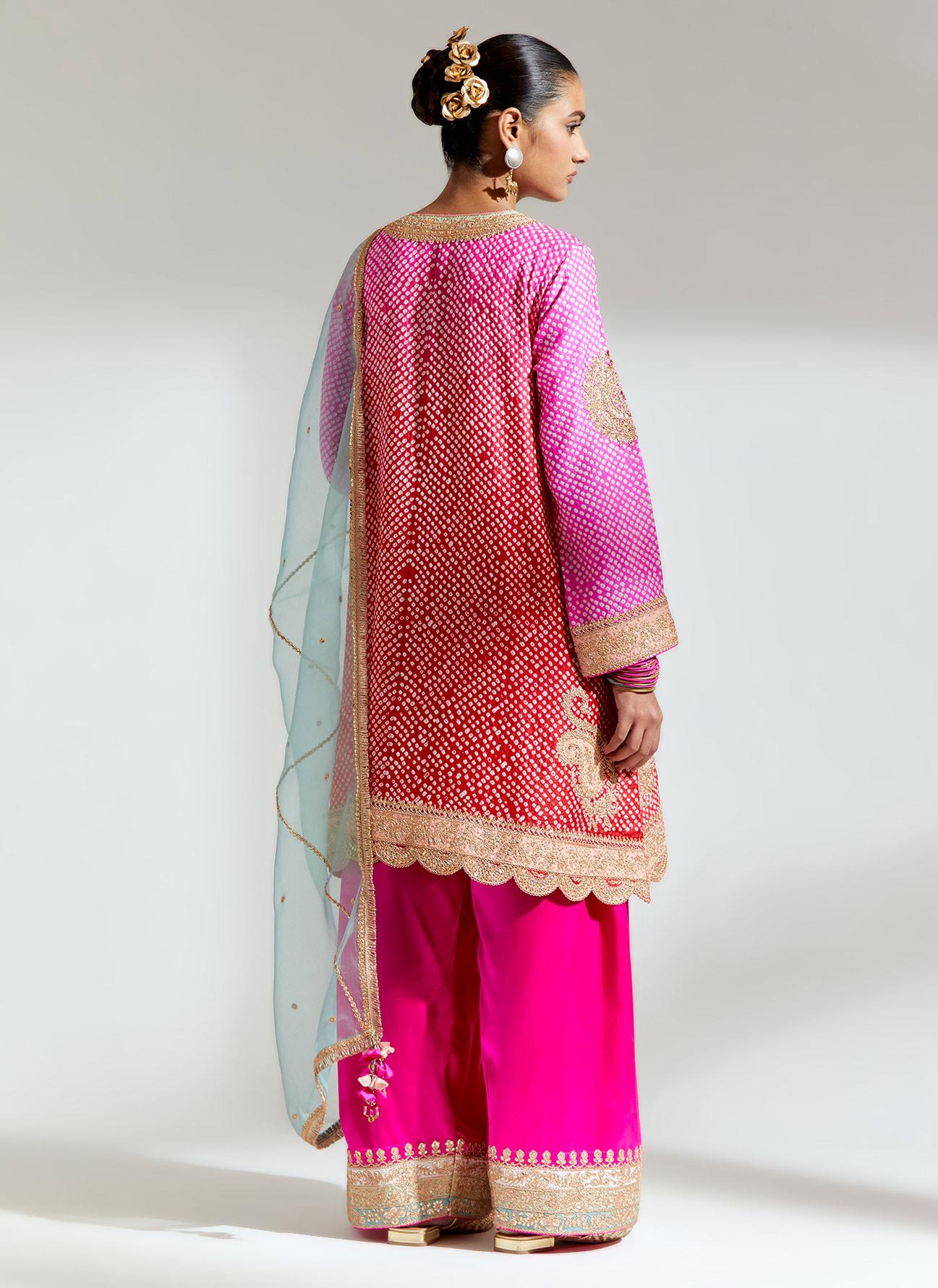 Fuchsia Pink Gota Marorri Bandhani Kurta Set