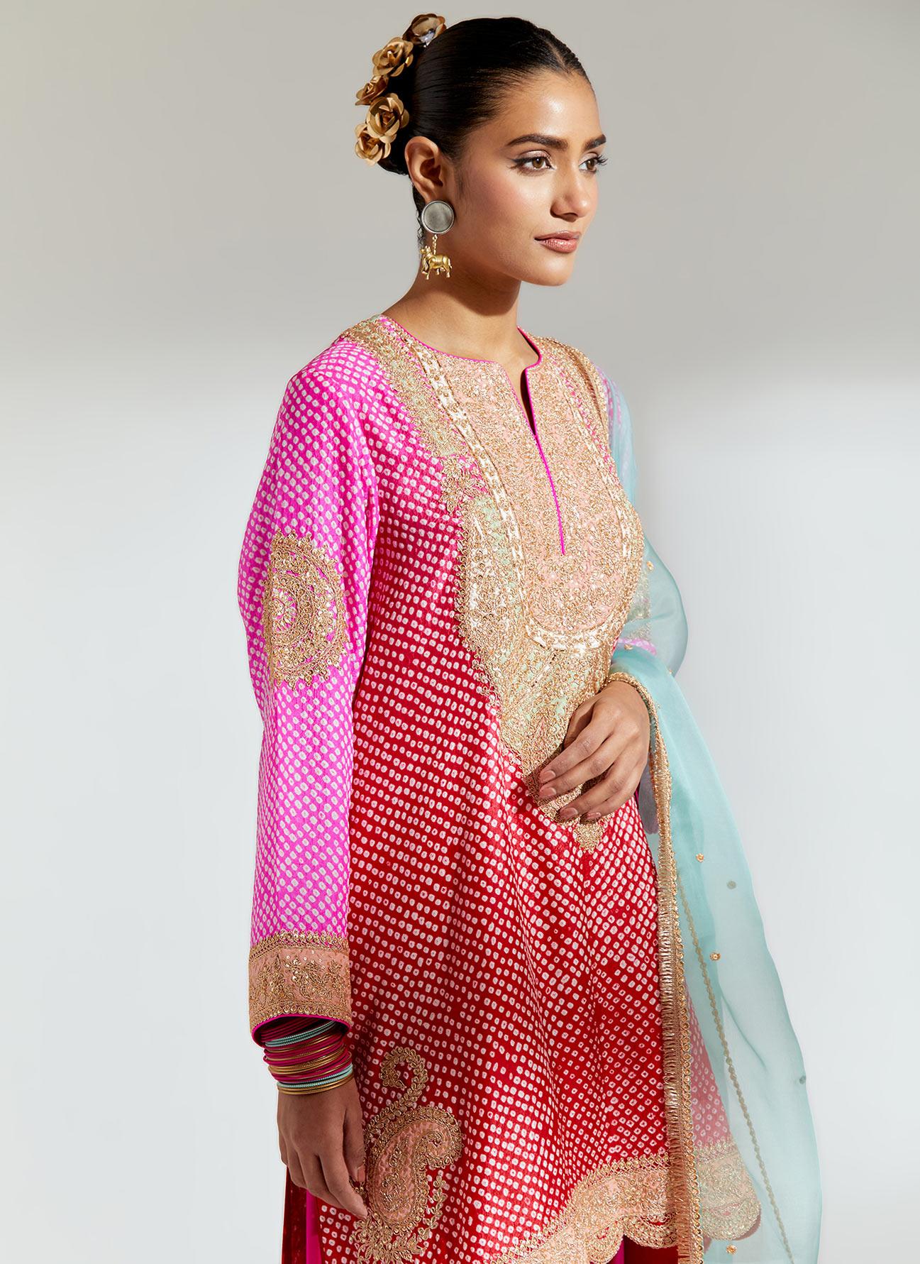 • Fuchsia Pink Bandhani Embroidered Kurta