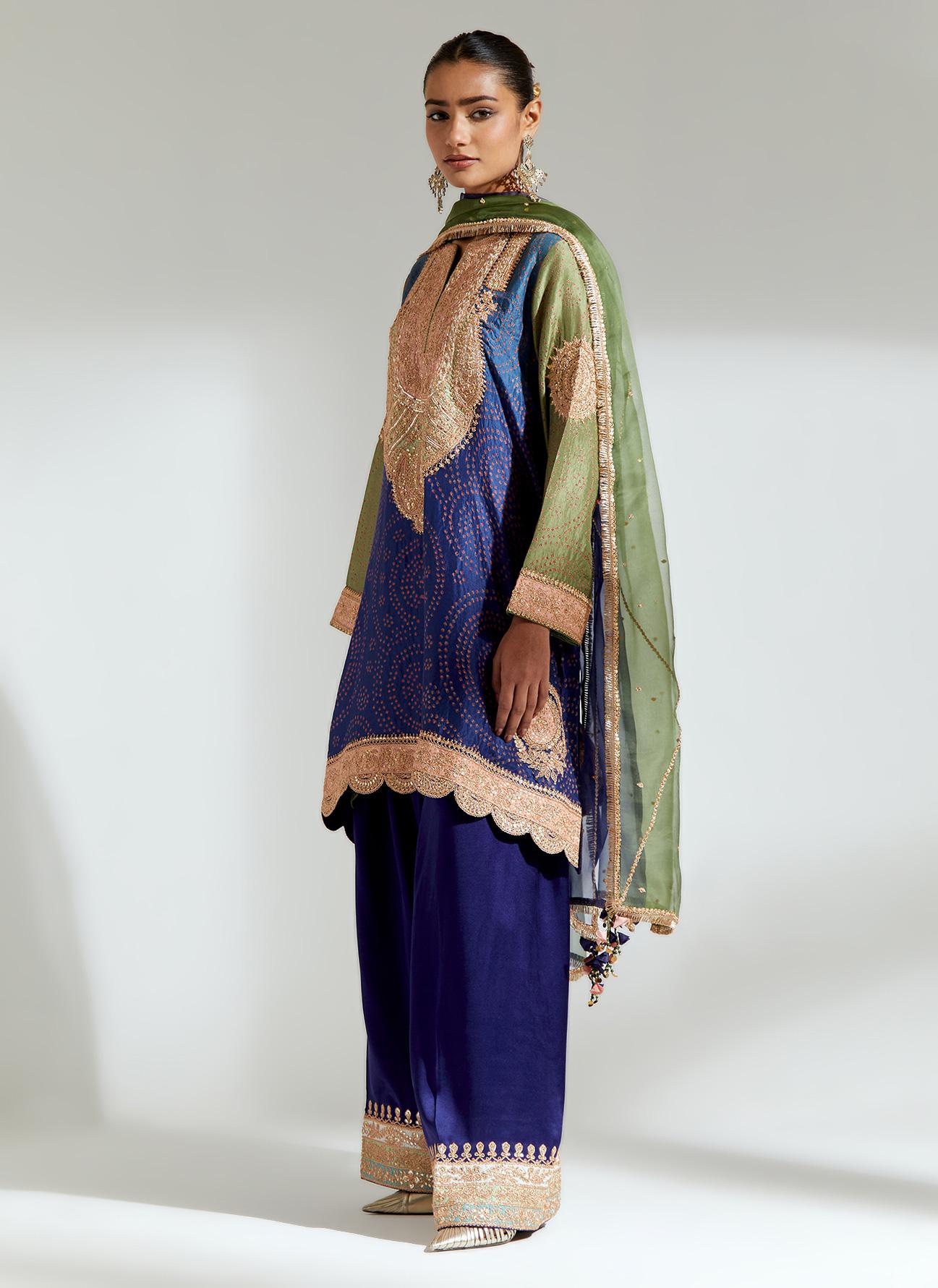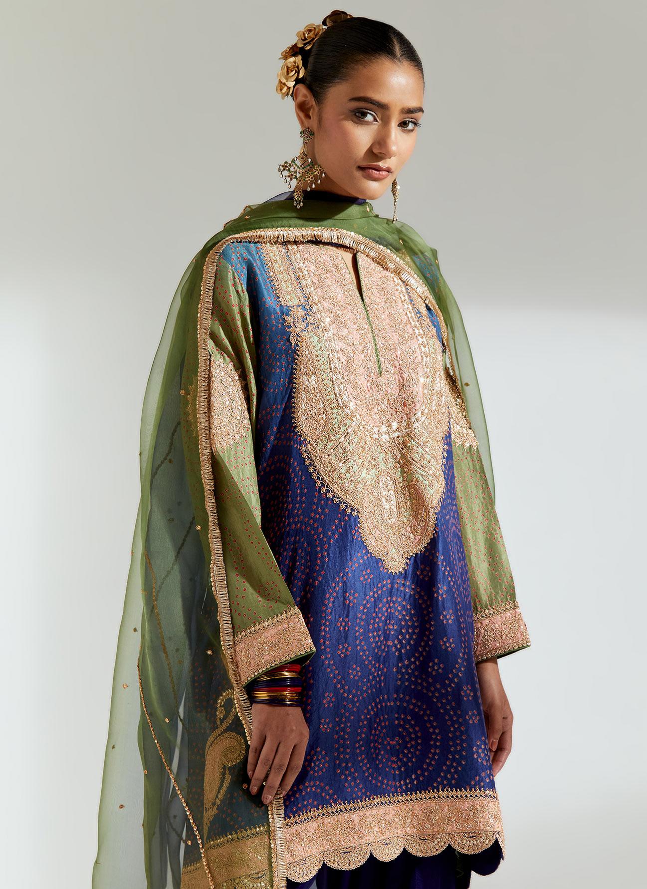 Navy Gota Marorri Bandhani Kurta Set