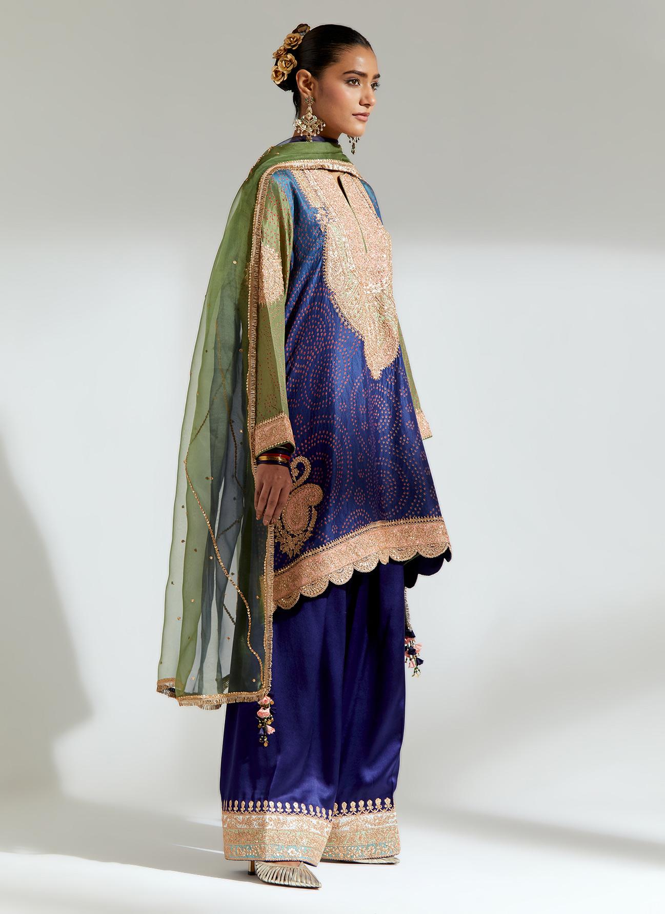 • Navy Bandhani Embroidered Kurta