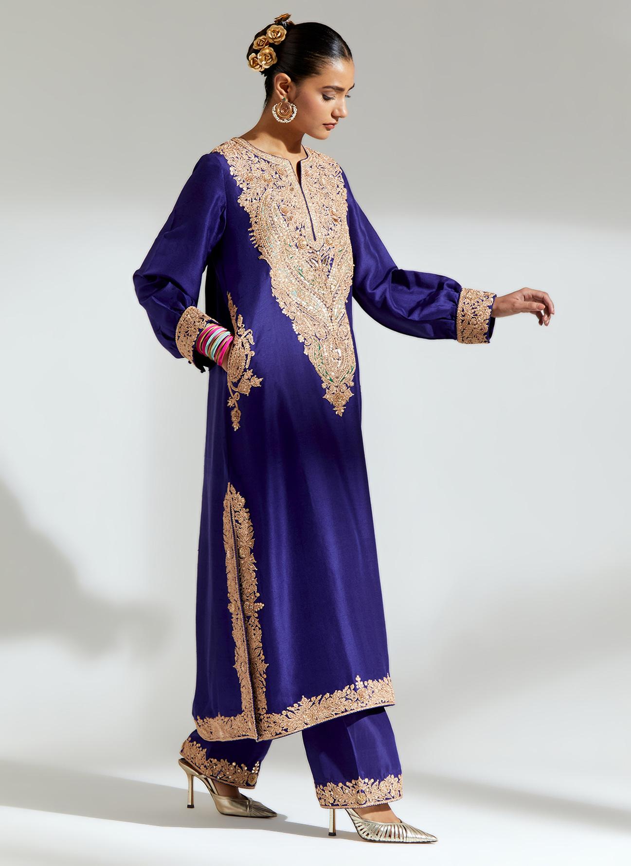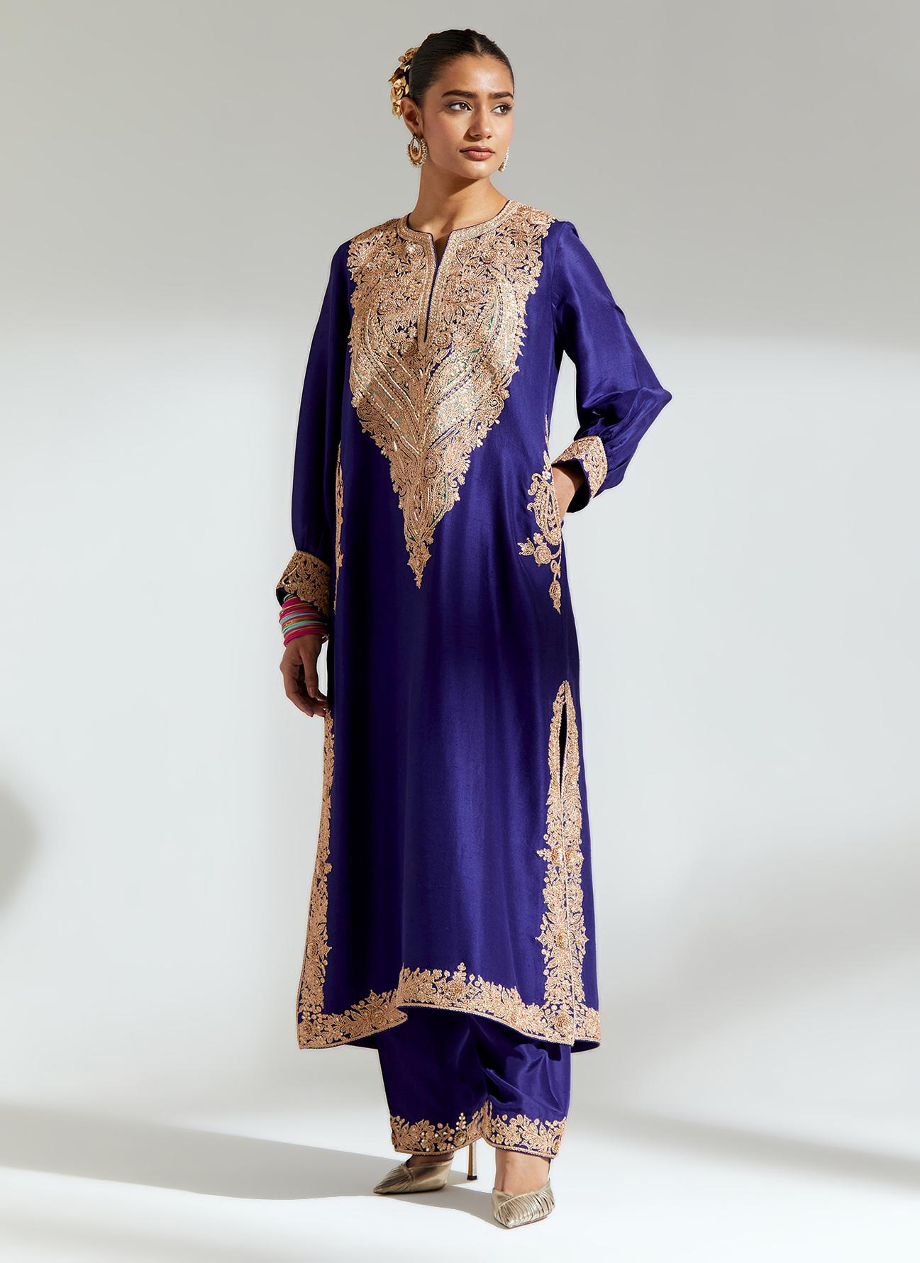 • Navy Embroidered Kurta