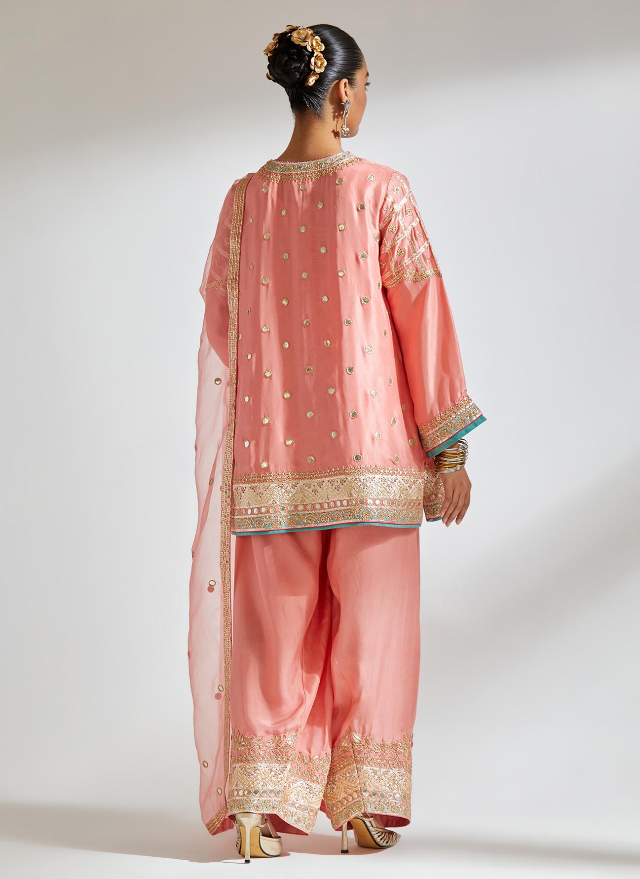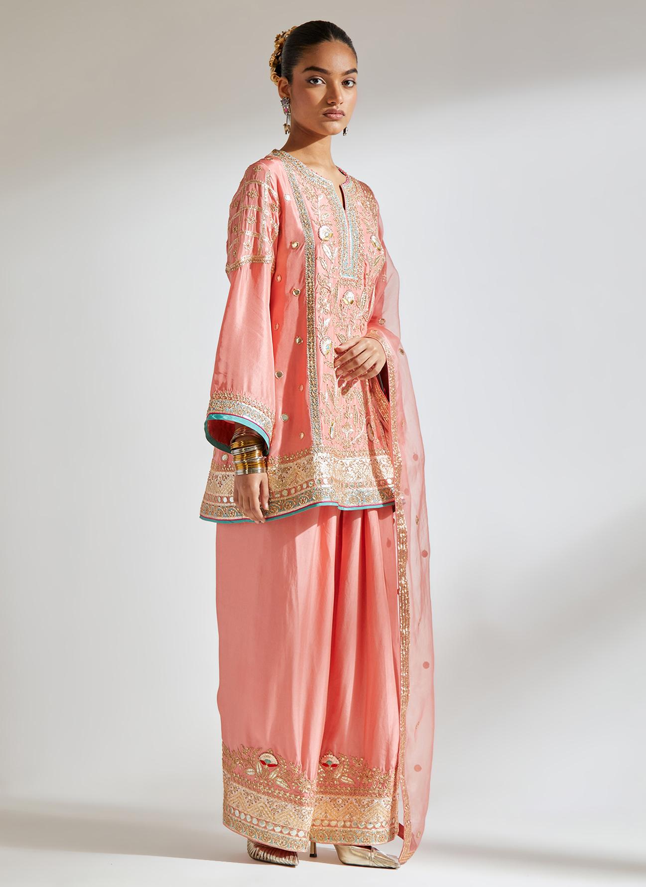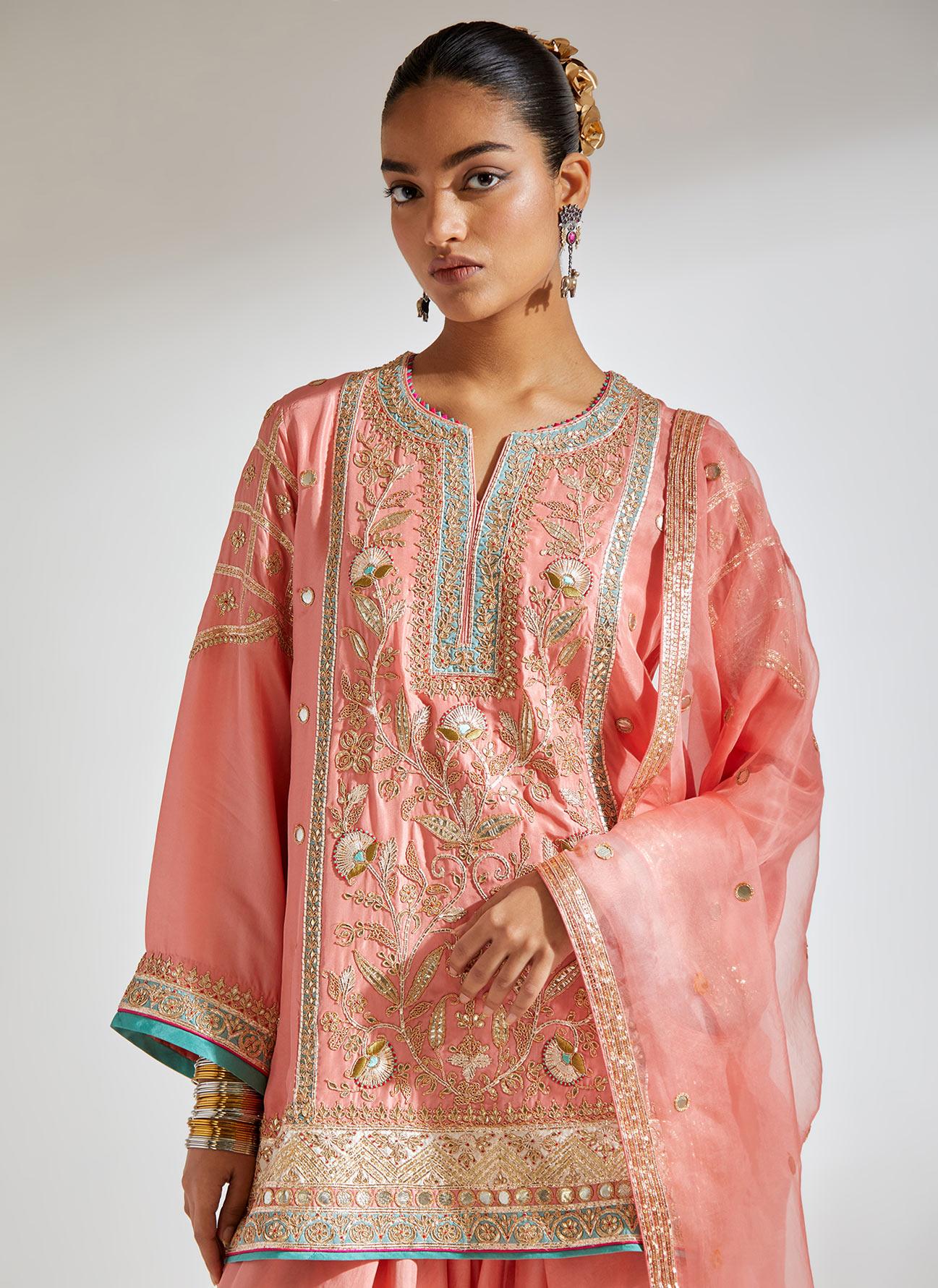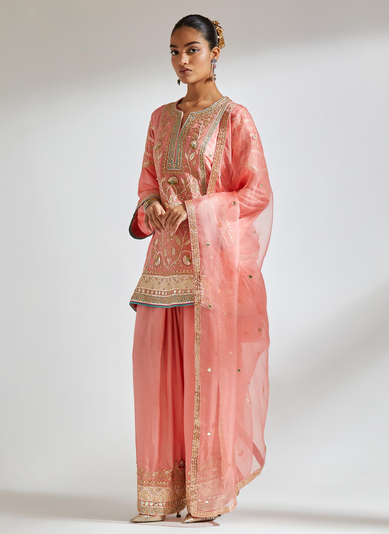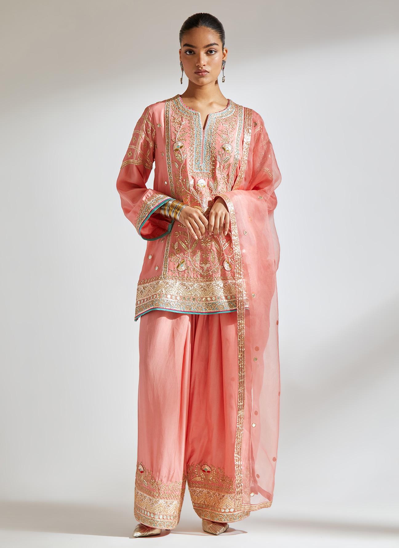 • Fabric: kurta - silk, izaar - silk, dupatta - silk organza