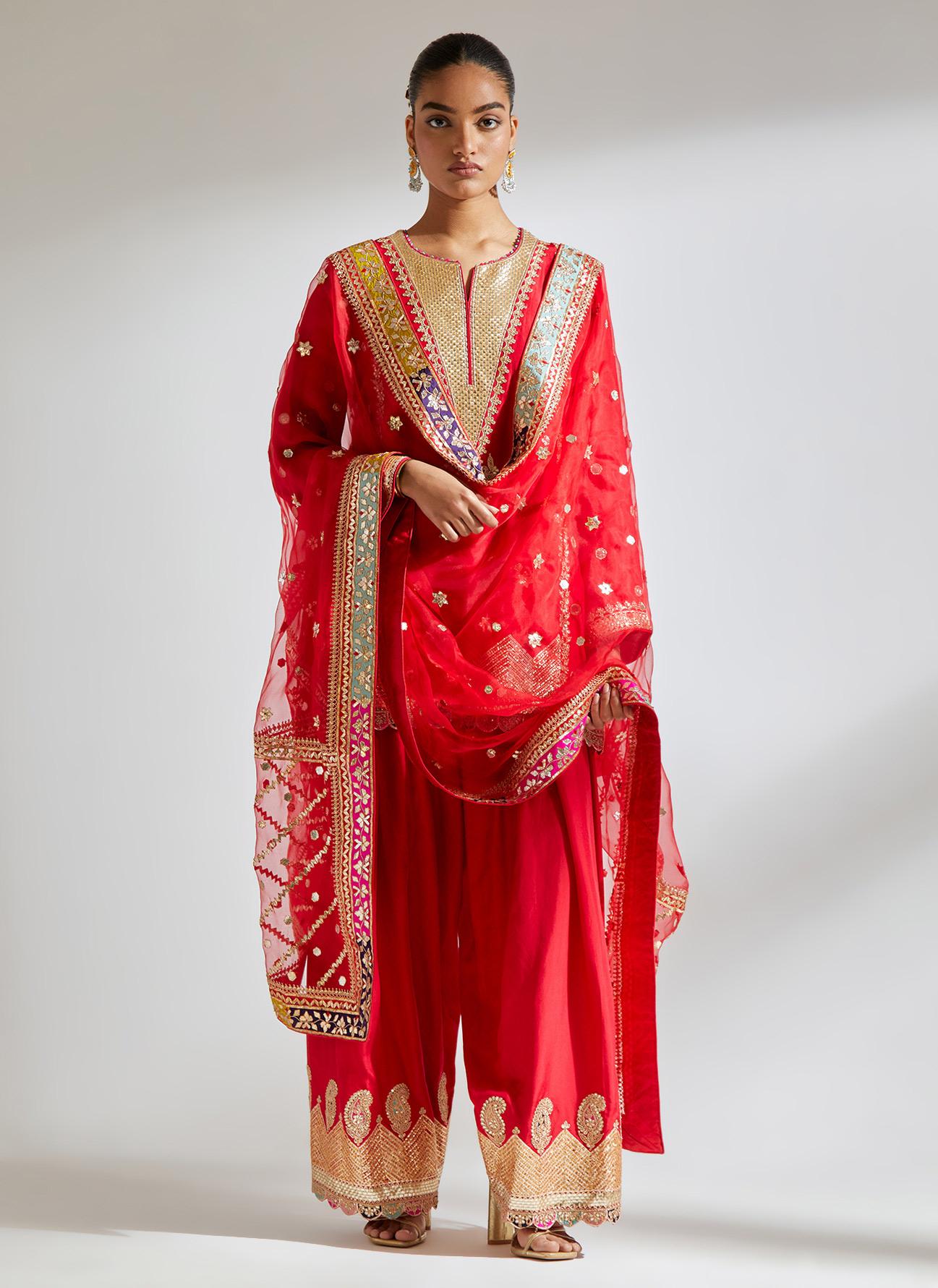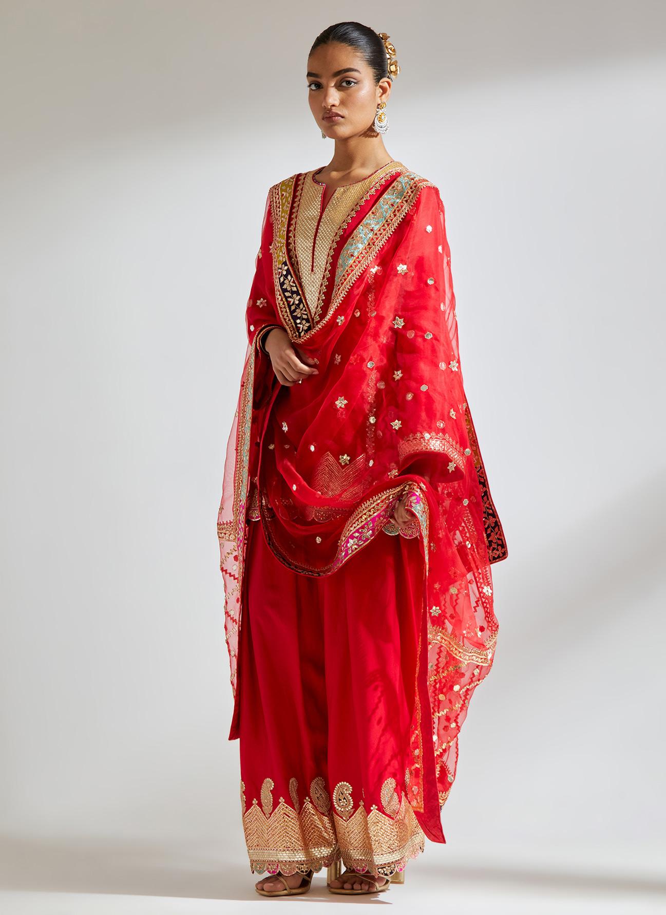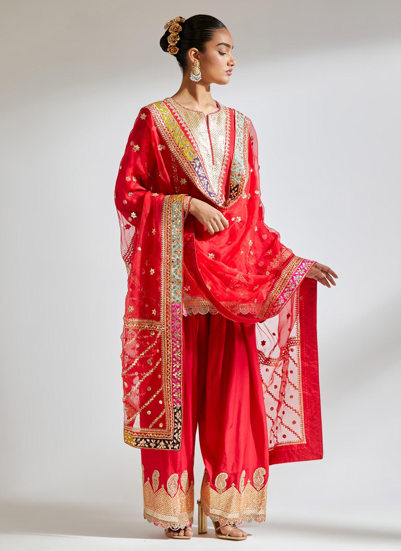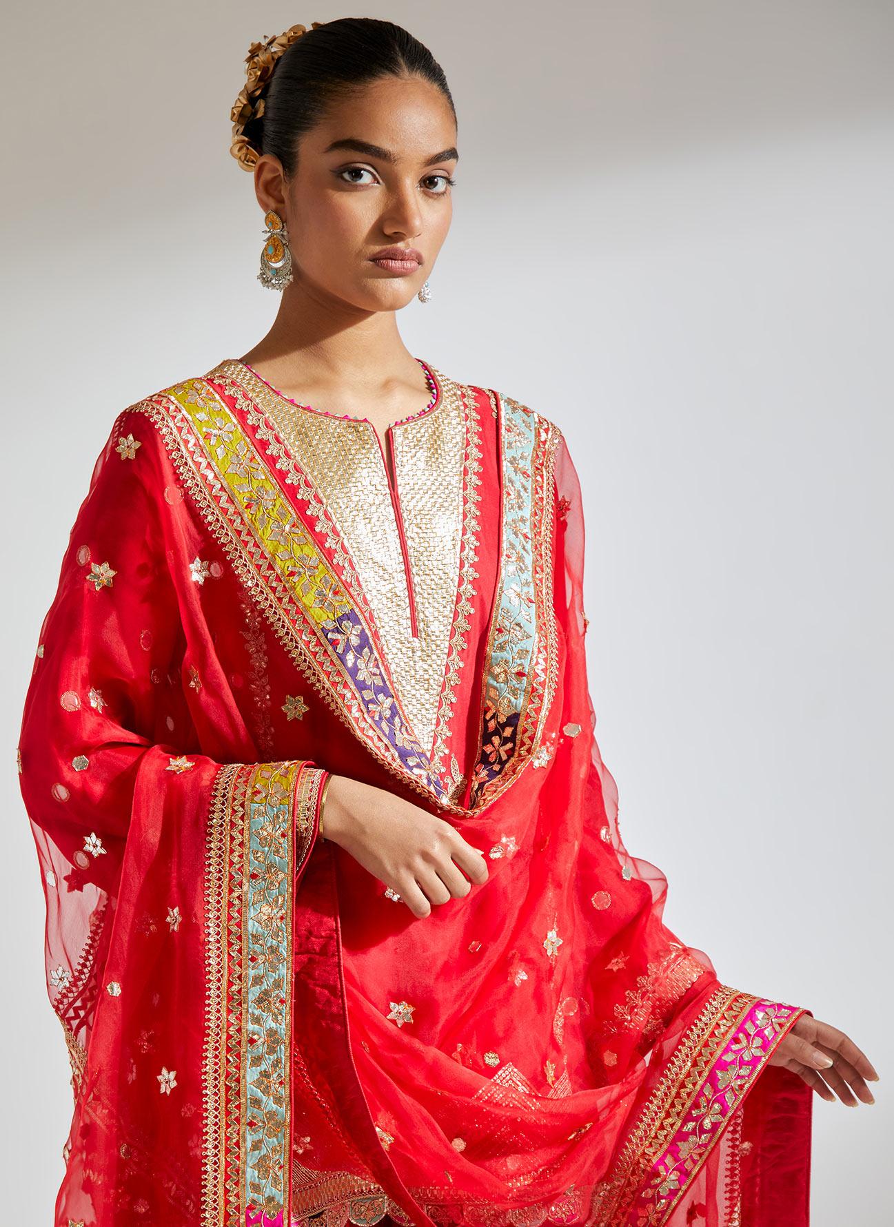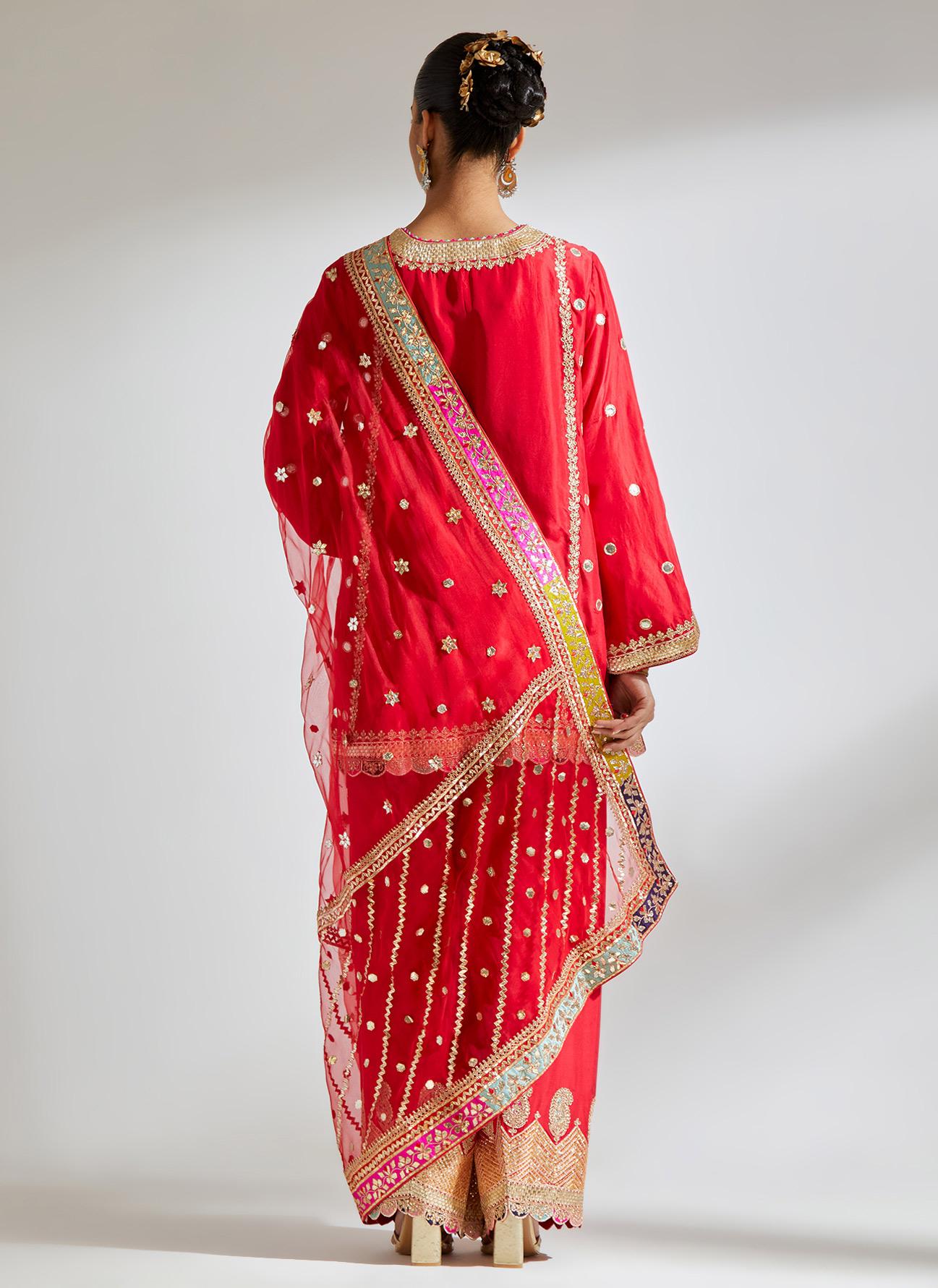 Red Gota Marorri Kurta Set