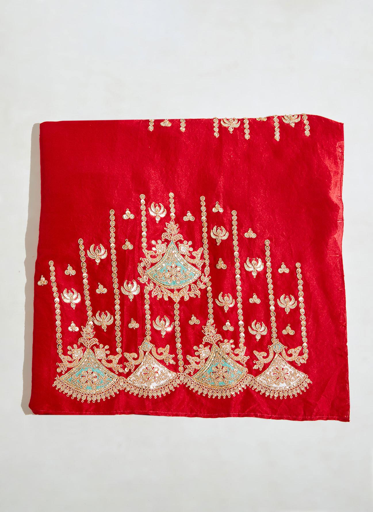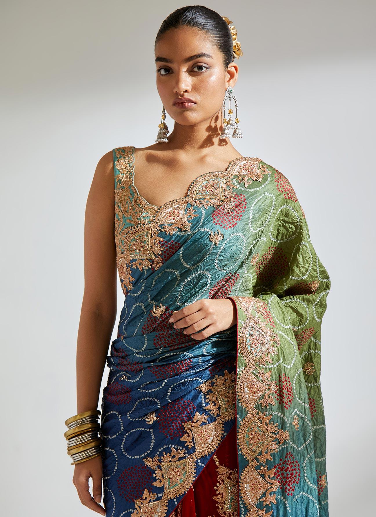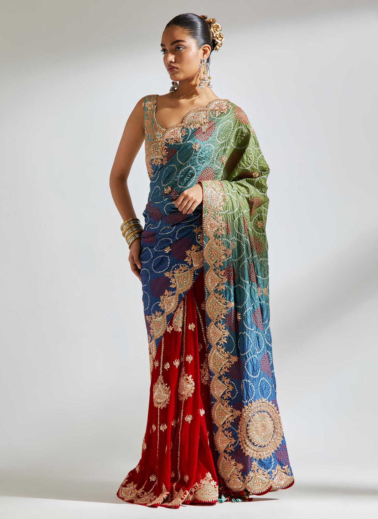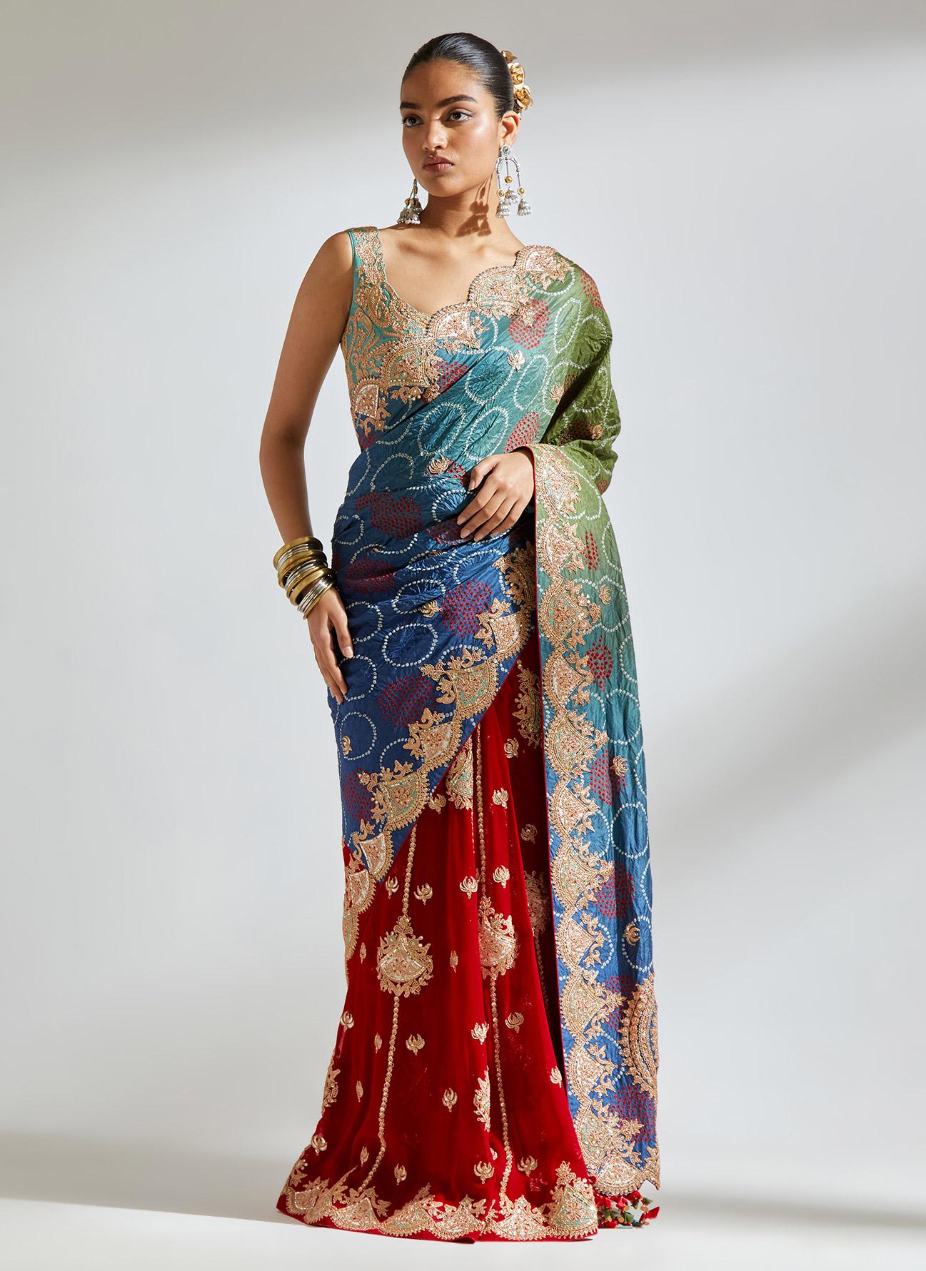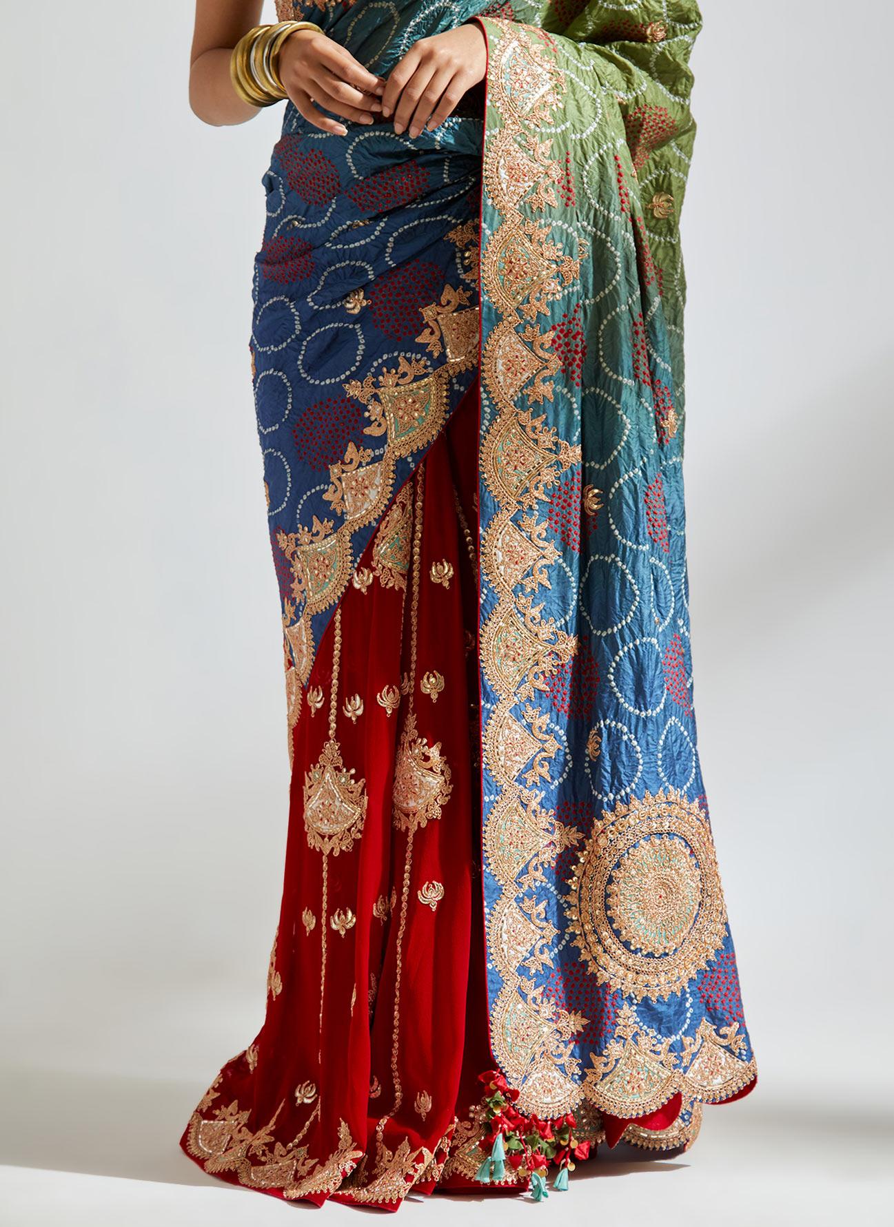 Red Bandhani Embroidered Lehenga Embroidered Saree