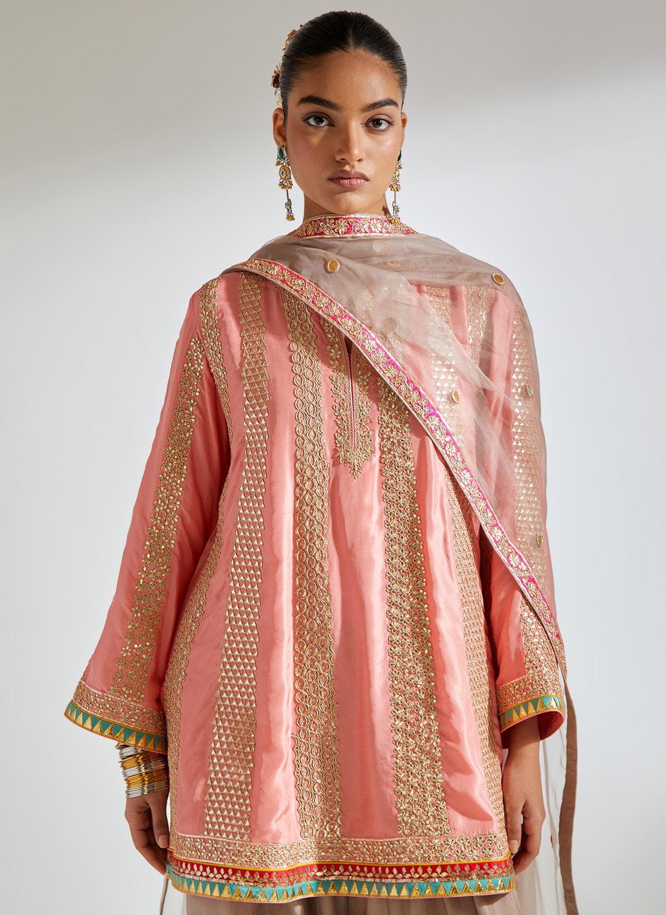 Salmon Gota Marorri Kurta Set