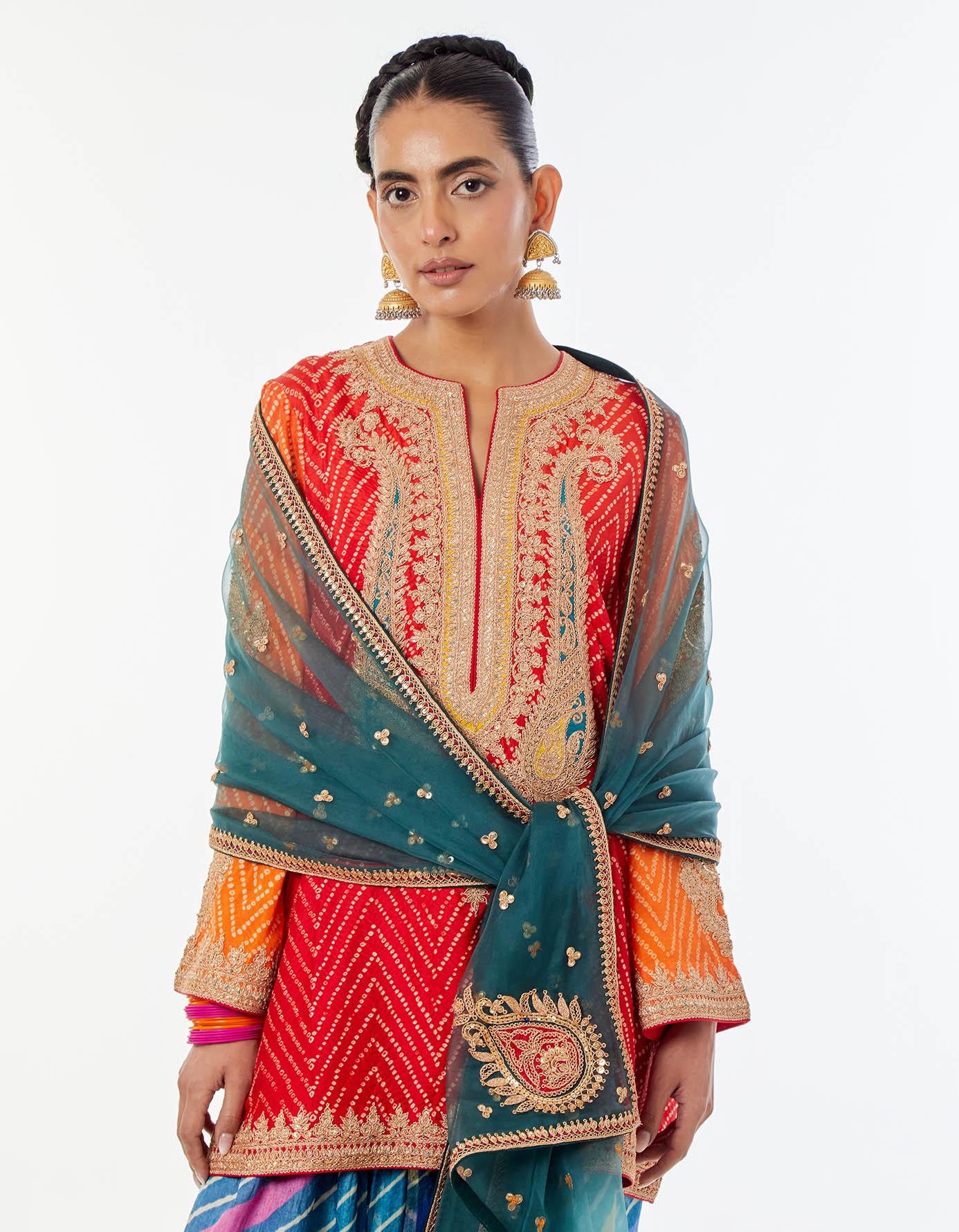Orange Gota Marorri Bandhani Kurta Set