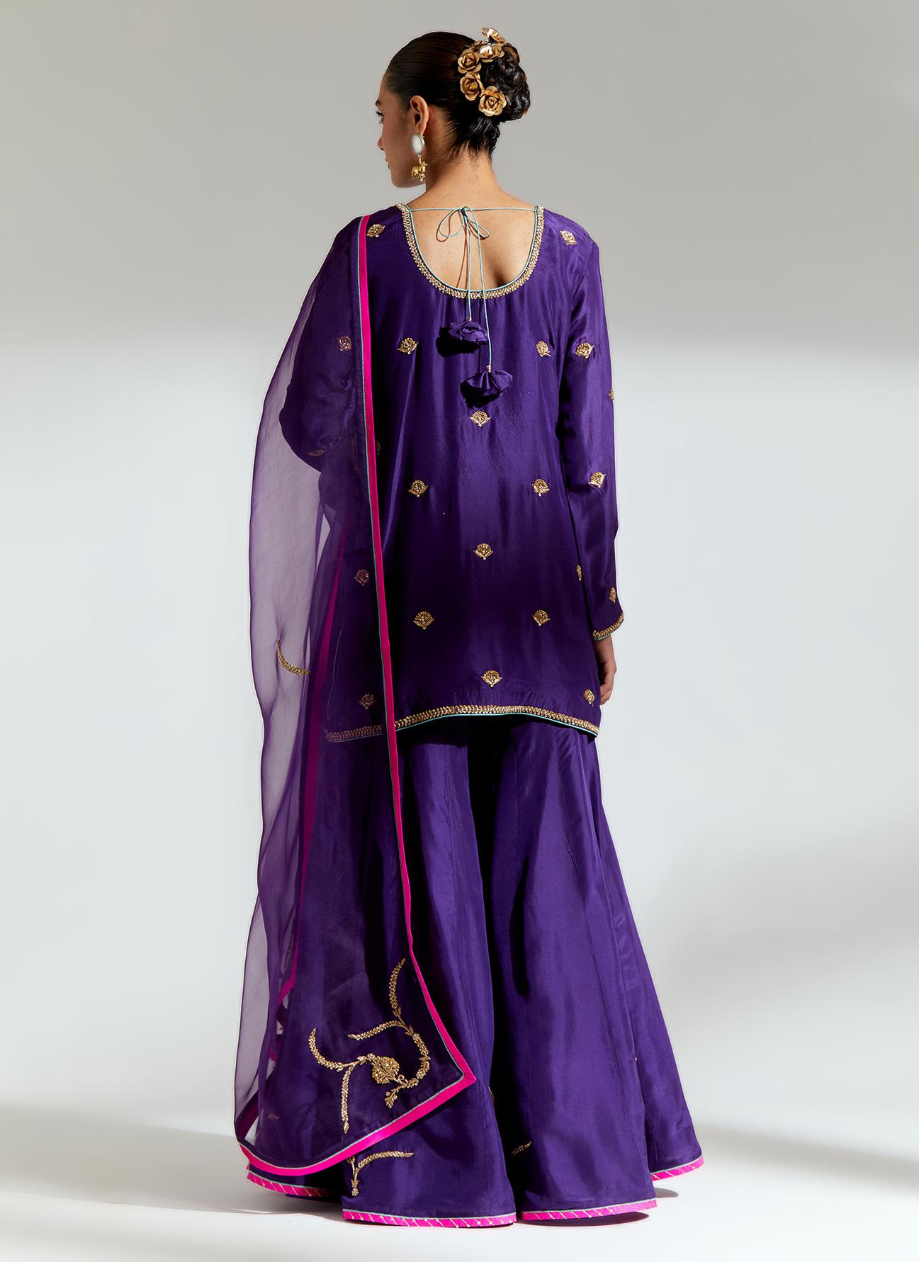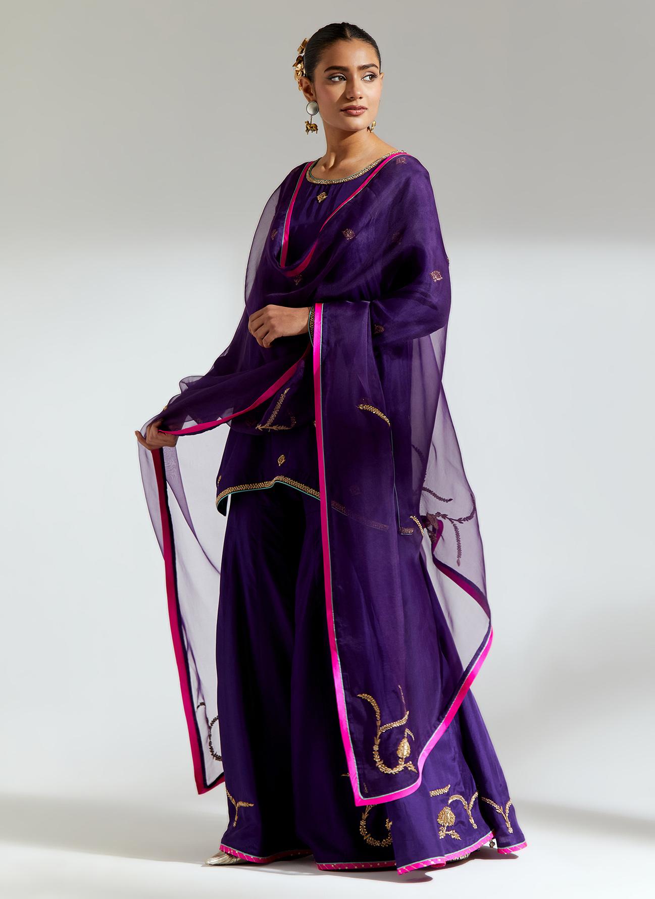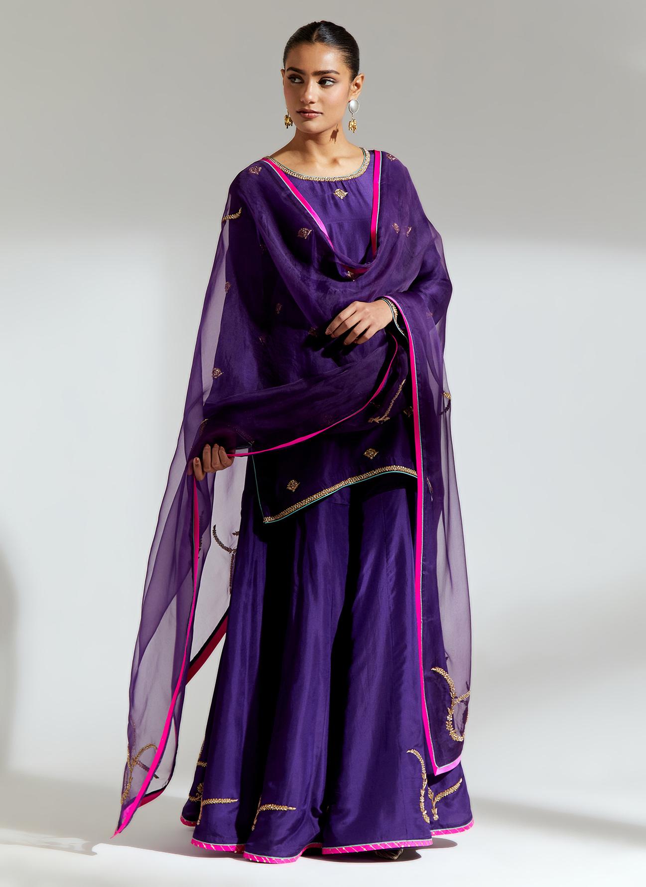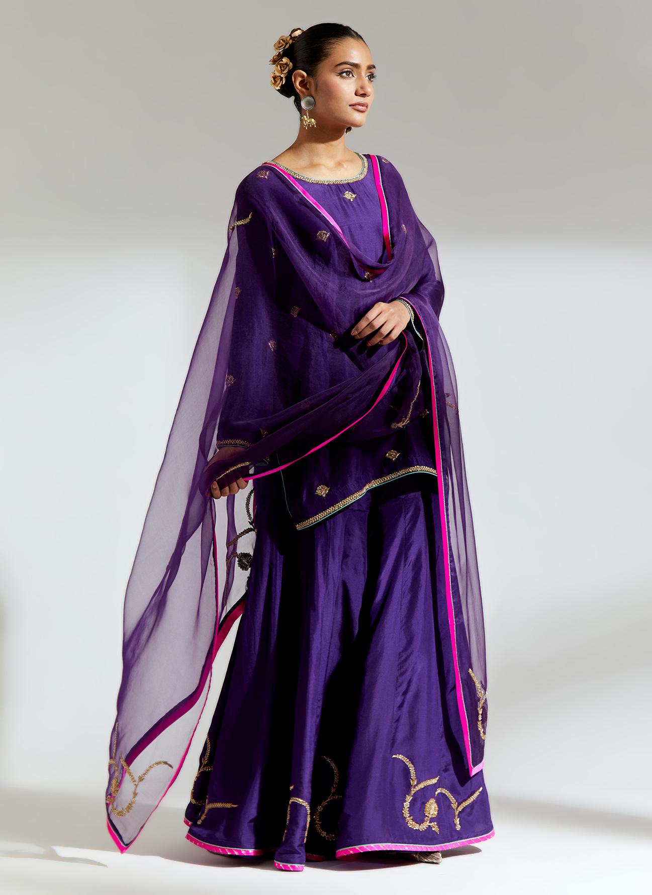 • Fabric: kurti - silk, sharara - silk, dupatta - silk organza